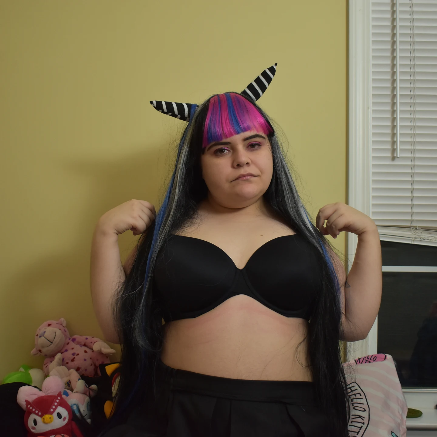 I've embodied the wild energy of Ibuki Mioda from Danganronpa in this curvy cosplay, complete with vibrant hair and horns. Download this digital set and enjoy intimate shots that highlight my playful poses and alluring outfit. Perfect for fans craving a personalized twist!