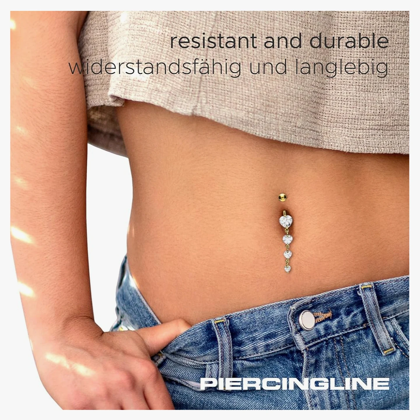 Decorate my belly 💗 surgical steel dangle belly button piercing with 4 hanging crystal hearts - belly button ring surgical steel, gold, silver, piercing - new version with improved durability. Highly rated