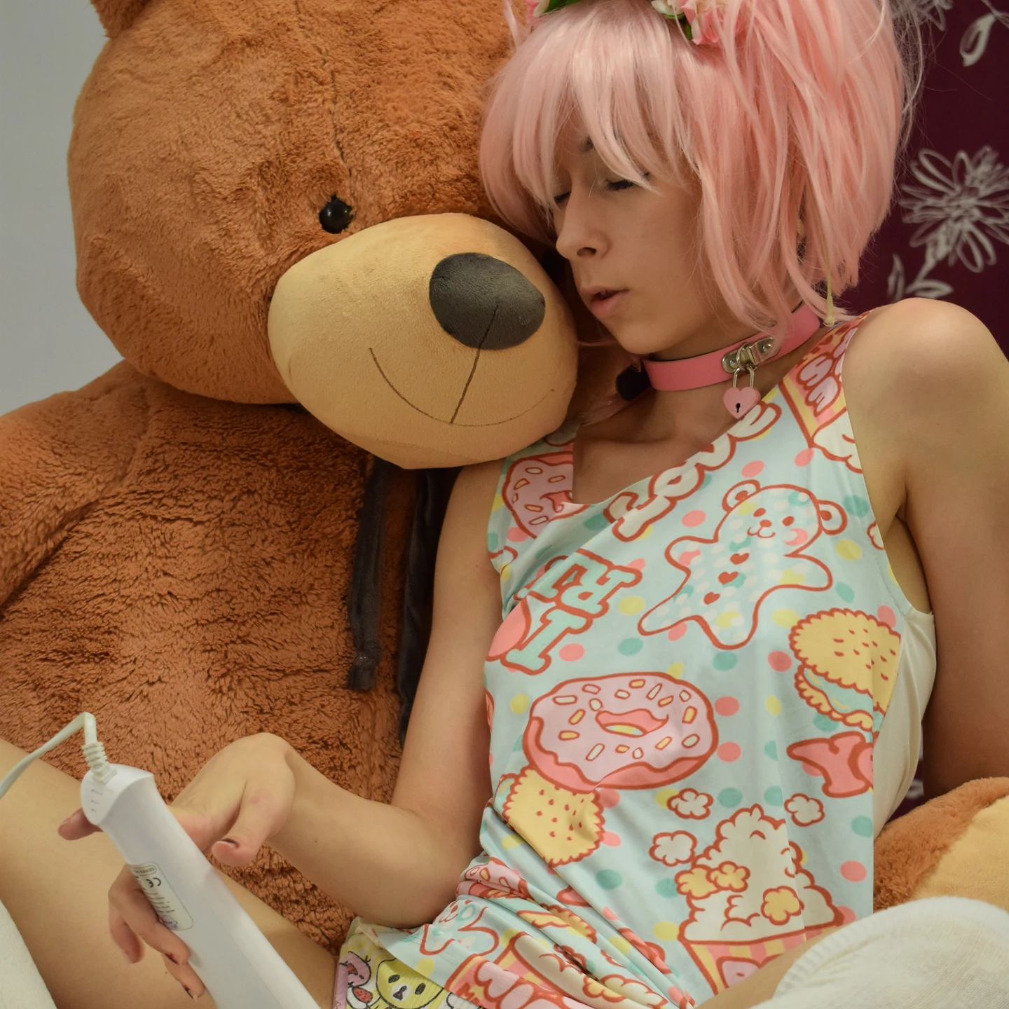 The photoset contains 55 pictures. Mostly sensual and with poor makeup. Boobs, hitachi, foot, closeups.