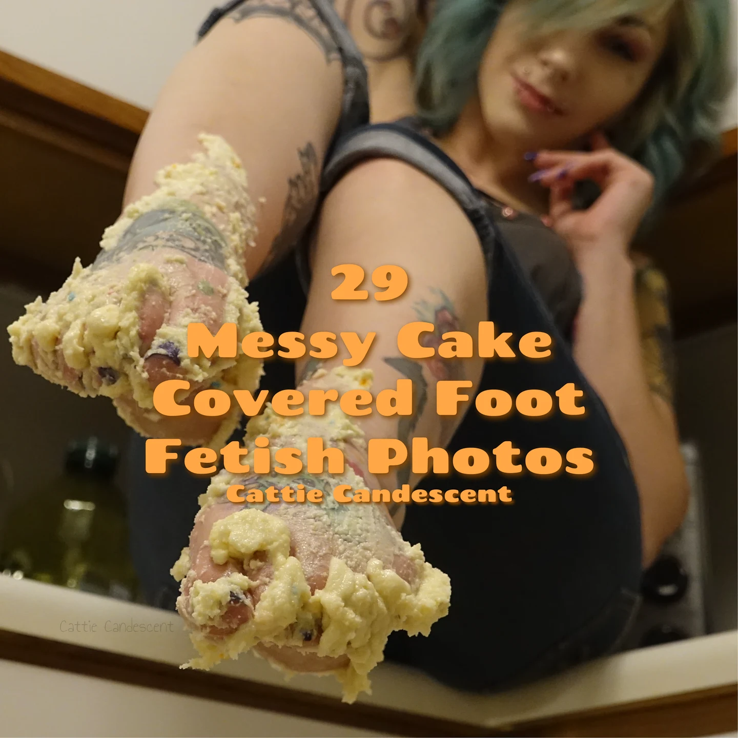 29 photos taken (not screenshots) from/while filming my Birthday Bitch Cake Mess clip! All (but 1) foot related photos! (The 1 that is not foot related is of myself and the 🐶 bowl covered in cake!)