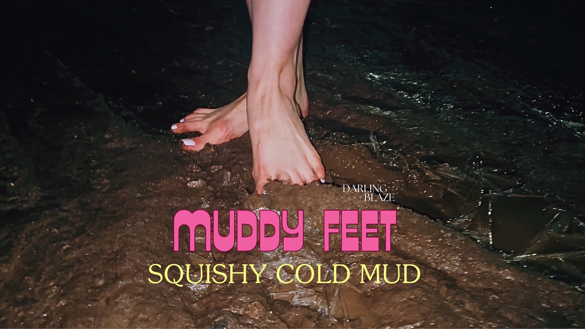 Barefoot in the cold winter air, Ana Blaze steps outside and takes a slow, teasing walk, letting her bare feet sink into soft, squishy mud. The icy ground contrasts with the warmth of her skin as her long, elegant toes-painted with a flawless white pedicure-gradually get coated in wet, messy dirt. She plays with the sensation, pressing her feet deeper, wiggling her toes, and teasing you with every step enjoying the cold, the texture, and the way the mud clings to her. Later, back at home, she takes you with her into the bathroom, where she slowly washes the mud away, revealing her clean, beautiful feet once again.