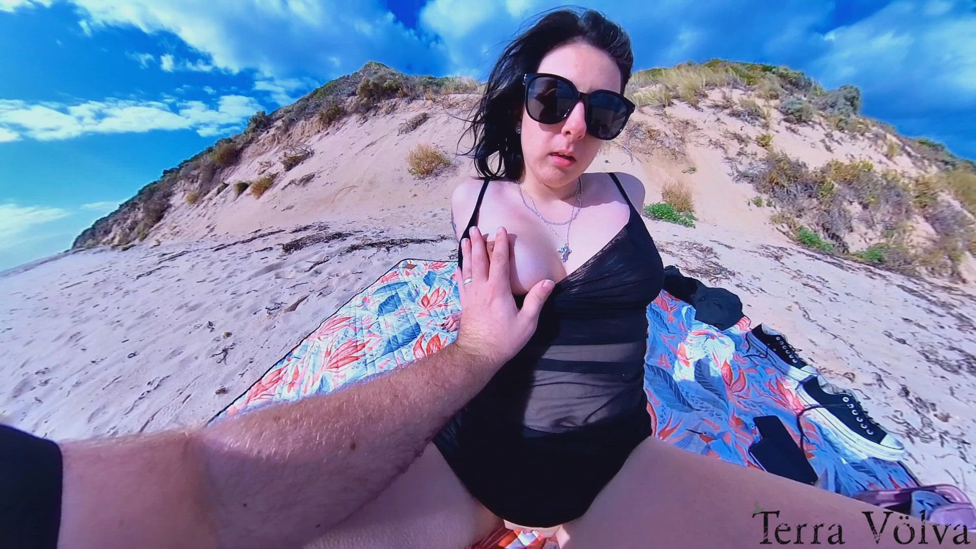 I'm soaking up the sun on this secluded beach in my sheer black swimsuit when you start teasing my body. Your hand slips between my legs, fingering my eager pussy until I'm gasping and writhing in pleasure. Watch me lose control and climax wildly under the open sky.