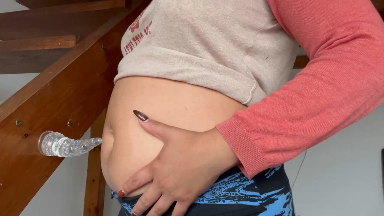 I moisturize my beautiful belly button with oil and prepare it to be fucked with my transparent dildo.
