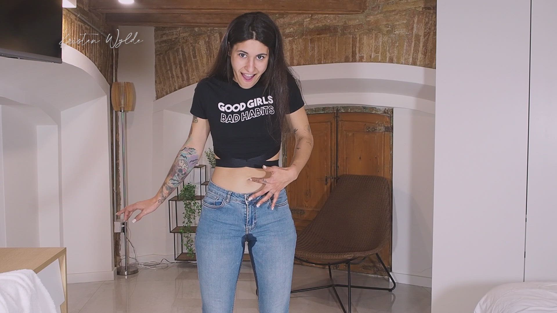 A teasing video where you can see me pee my jeans while I play with my bellybutton.