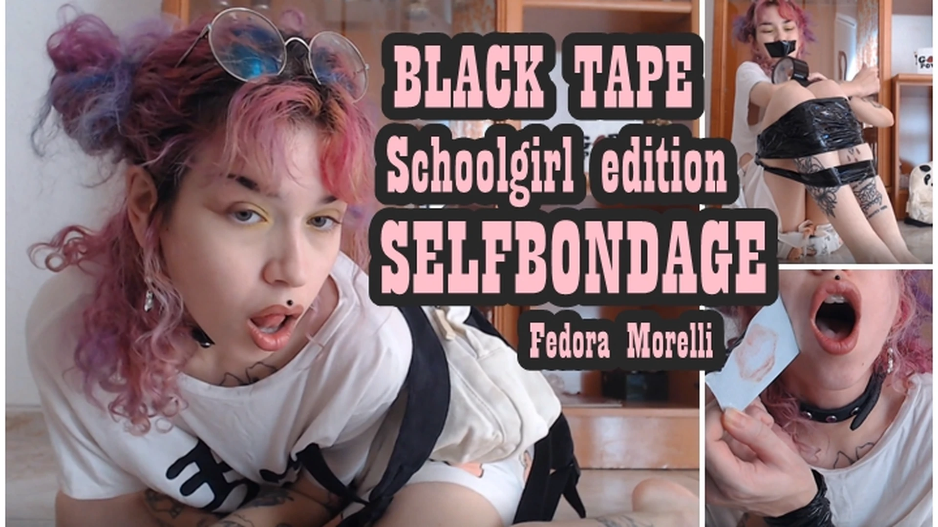 Hello my darling . Today I'm a sweet bimbo school girl . SELF BONDAGE ALERT! I use black tape ... so I have some fun alone . Just me , myself and a tape . I put some tape on my mouth so I can't talk , then my legs and arms ... it's so struggling TAGS : Fedora morelli fedoramorelli bonding bdsm...