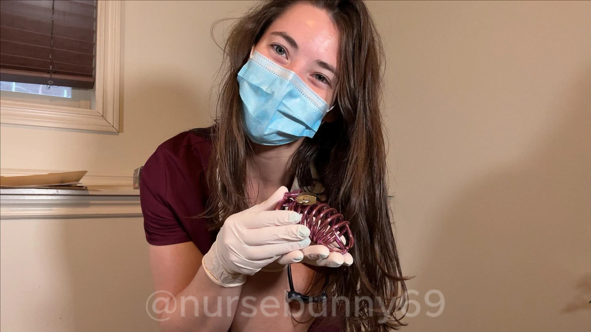 You're here for your physical exam with Nurse Bunny, but you have concerns about a little problem below the belt and want her help in being a better sissy. She barely notices your small problem, but is happy to help you with a fresh makeover before your prostate exam. She humiliates your small penis and dresses you up in lace lingerie before putting you in a chastity cage. After that, she performs your anal exam with a new strap on and measures just how much of it you can take to tell if you're a good sissy or not. She's wearing red scrubs, white latex exam gloves, a blue earloop mask, white Littmann stethoscope, and uses a realistic strapon dildo and pink metal chastity cage. No nudity. 1080p version.