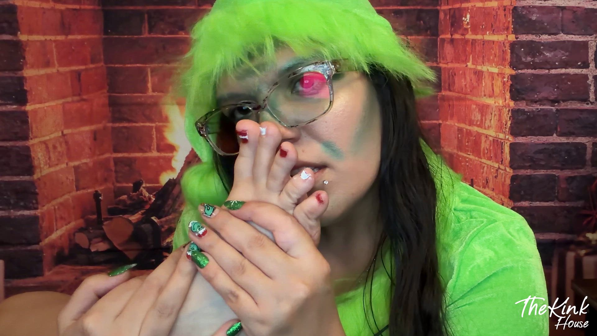 Eris transforms into the naughtiest version of The Grinch you’ve ever seen—green dress, a mischievous grin, and zero shame. But instead of stealing Christmas, she's stealing your attention with something far more pungent: her sweaty, stinky, gloriously dirty feet. After a full day barefoot in the house, she peels off her socks to reveal the true holiday horror: thick, tangy foot funk that could gross out a reindeer. And she savors every second of it. She crawls into frame as the Grinch, cackling low and slow, wiggling her toes in front of the camera. You watch, helpless, as she brings one foot up to her face—long, deliberate inhales through her nose, eyes rolling back. The stench is real, and she's not hiding it—she's worshipping it. This is fetish fantasy meets holiday cosplay, blending stinky feet, scent play, roleplay, and a dash of sick kink—all wrapped in a green, furry, Christmas-sized package.