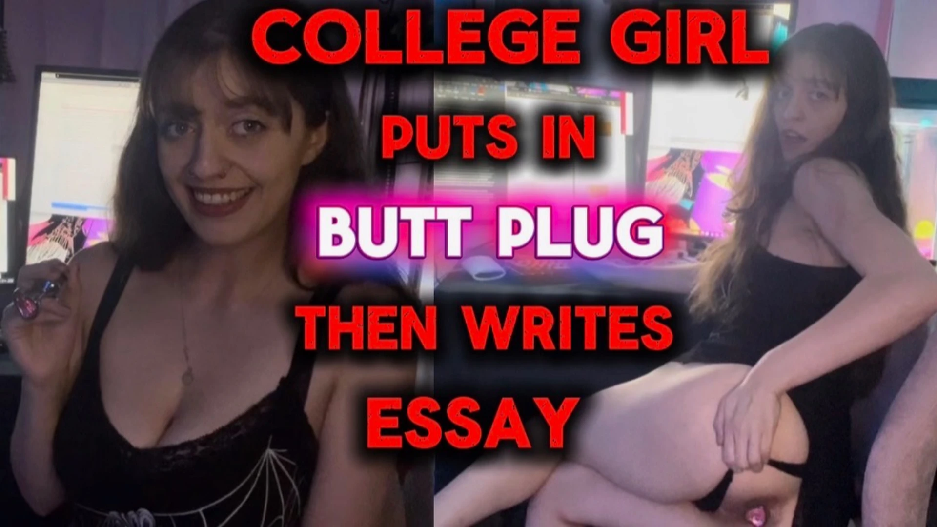 I have a lot of school work to do since I started college this week but i thought it would be fun if i wore my butt plug while I worked on my school work. Cum see me bend myself over my desk while I shove my butt plug in my asshole.