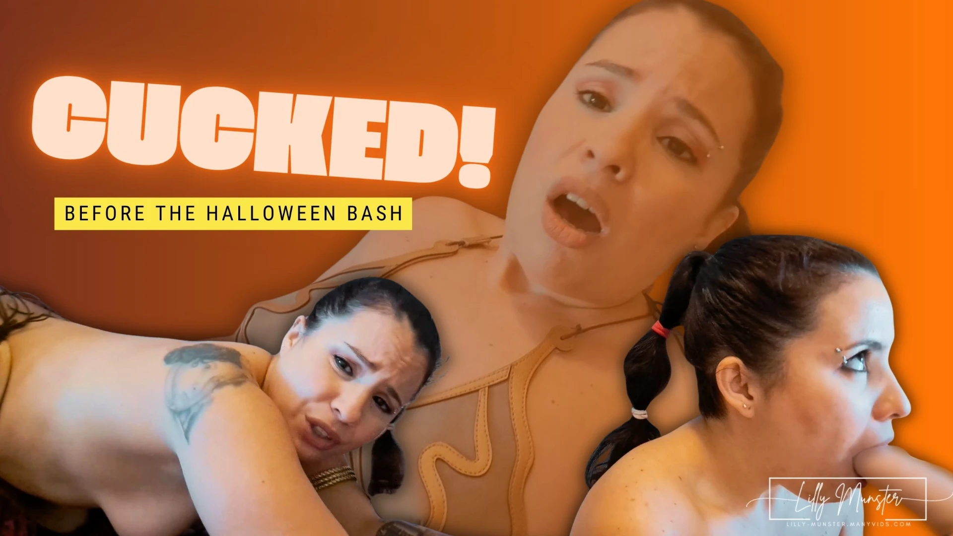 We're about to leave for the Halloween party when I send a pic of my outfit to the neighbor, and he says I look fucking hot and he wants to come and fuck me. I let you know what's going on, and you say he can come, but you really want to watch. Then, I welcome him, he eats my pussy, I suck his dick, and he fucks me doggystyle while you observe and masturbate in front of us, since I don't allow you to touch me. You are such a good cuck, honey.