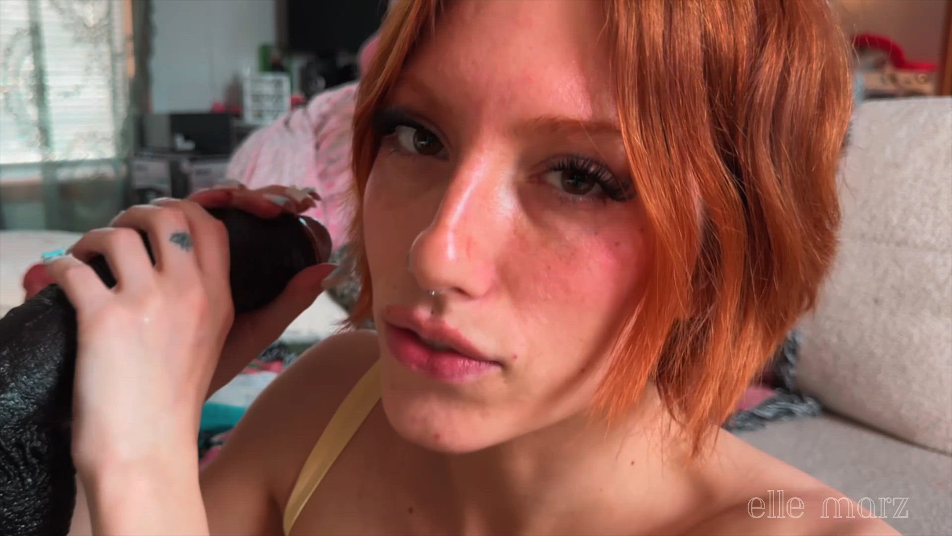 my bf doesn't have a big enough cock for me.. and you want me to be satisfied don't you. then watch me take this BBc.. omg. does that turn you on?! you want his cock too don't you.