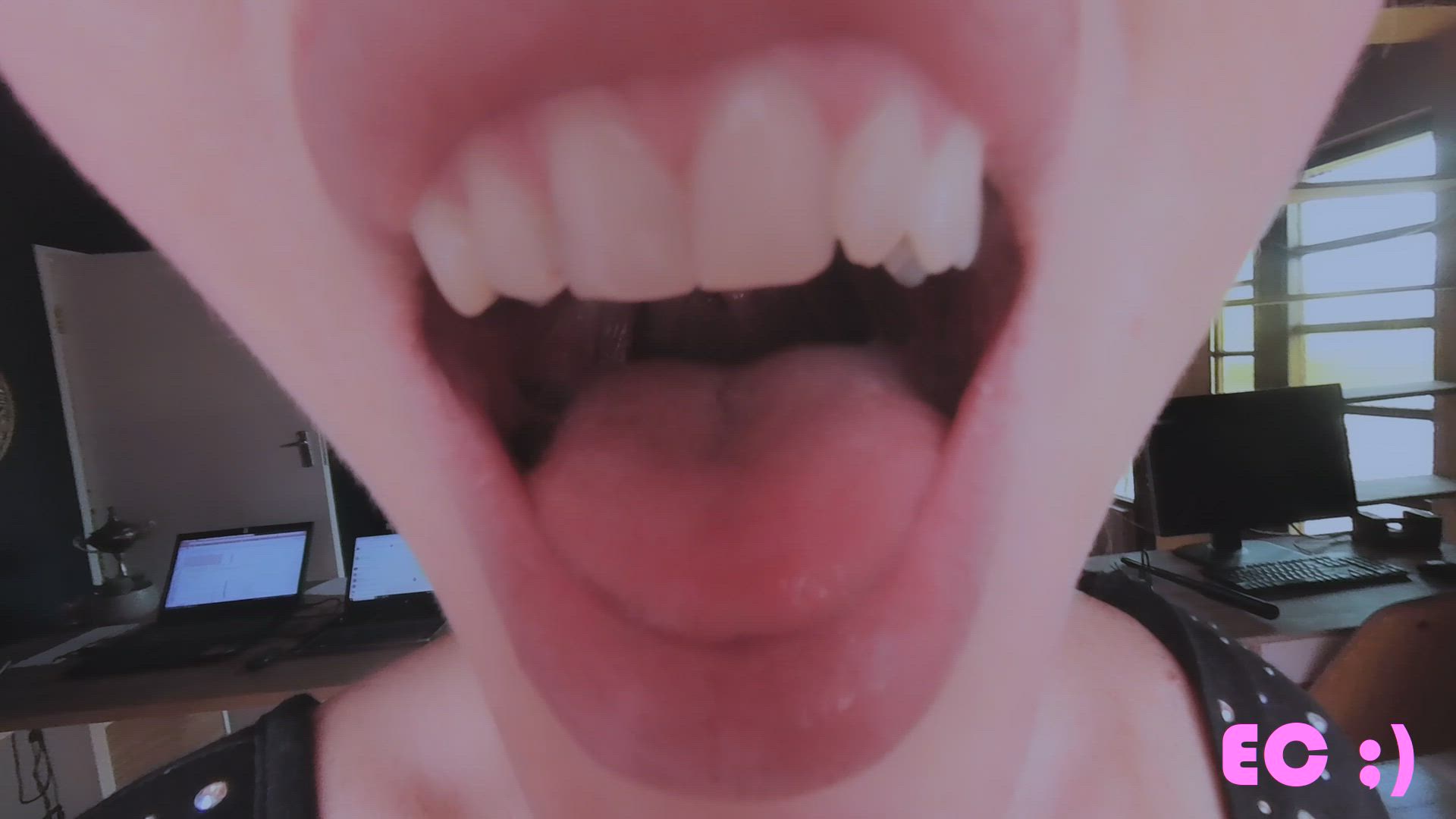 I get up close and personal, showing off my soft, inviting lips before opening wide for you to explore every detail inside my mouth. Watch me tease with my tongue, making you crave more of this intimate view. I whisper seductively, drawing you in deeper with each moment.
