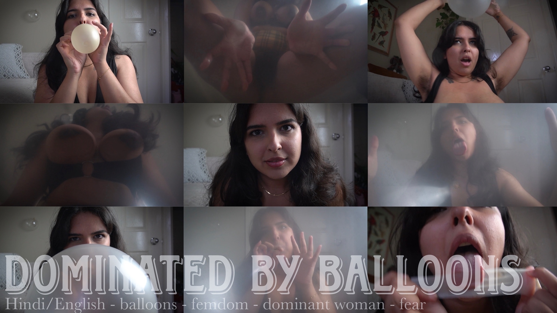 For fans of: balloon popping, latex balloons, balloon blowing, looner, dominant woman, femdom, domination, brunette, tied up, implied bondage, face sitting, riding, balloons