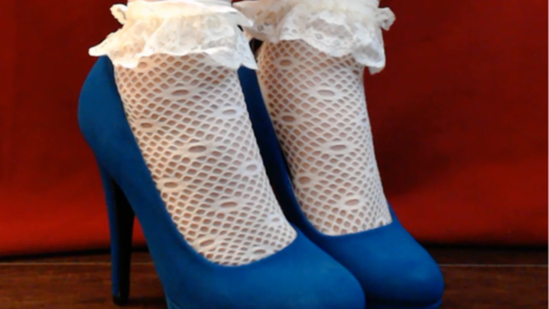 Frilly little socks and sexy blue suede shoes tease you