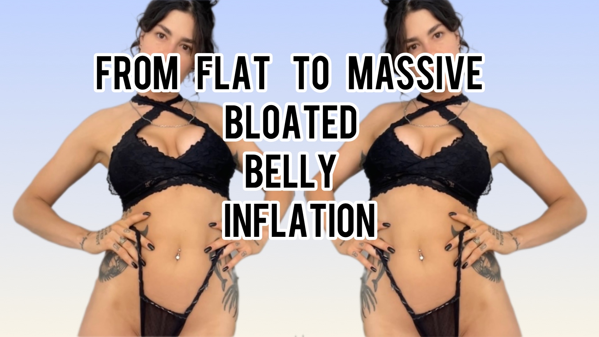 I show the full sequence of how my belly transforms… from perfectly flat and toned to right on the edge of bursting. I start with carved abs, tiny waist, stomach completely flat and empty. Watch me destroy it all. First huge glass of ice-cold sparkling water chugged in one go. Bubbles slam in...
