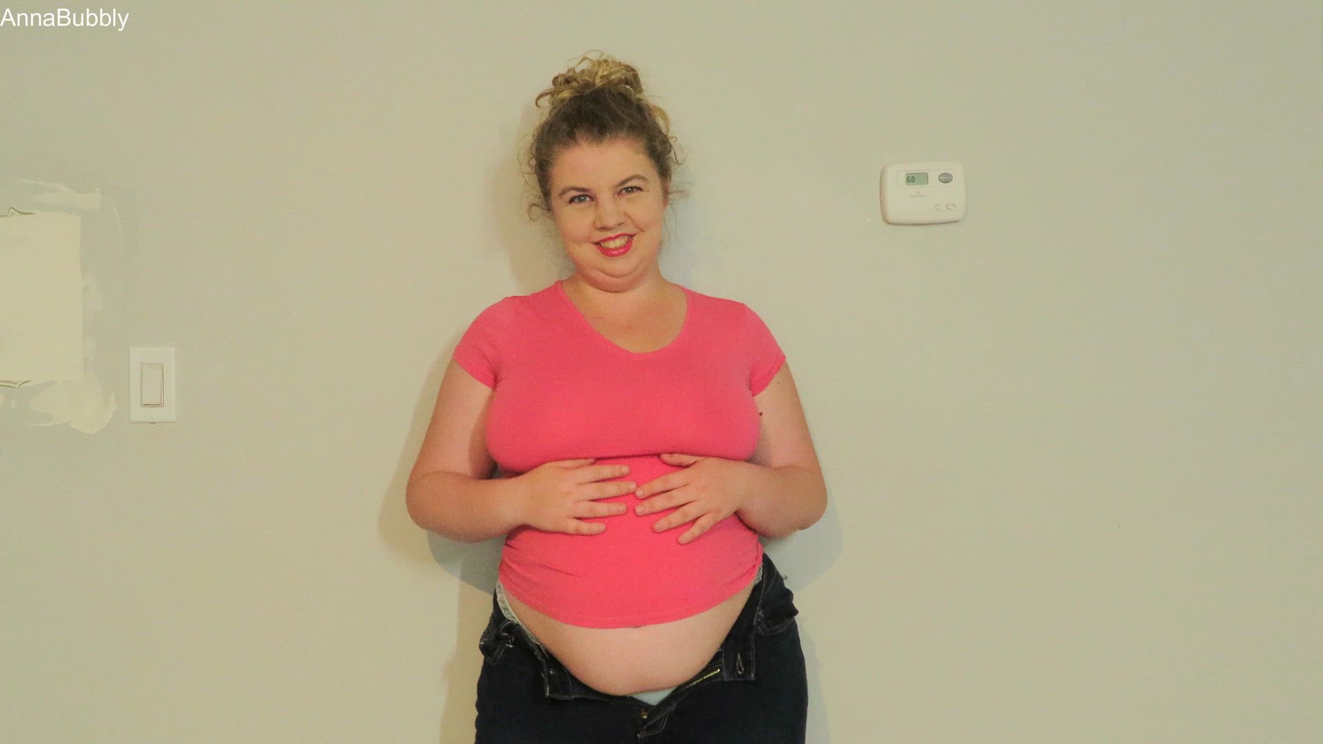 The beginning of pregnancy makes me so gassy! Around 15 weeks pregnant, I stand there rubbing my fat/bloated/pregnant belly burping repeatedly. While I am pregnant, it's at a state that looks more like just bloated and chubby still. I rub and show off my belly a lot, lots of burping. No soda (a few...