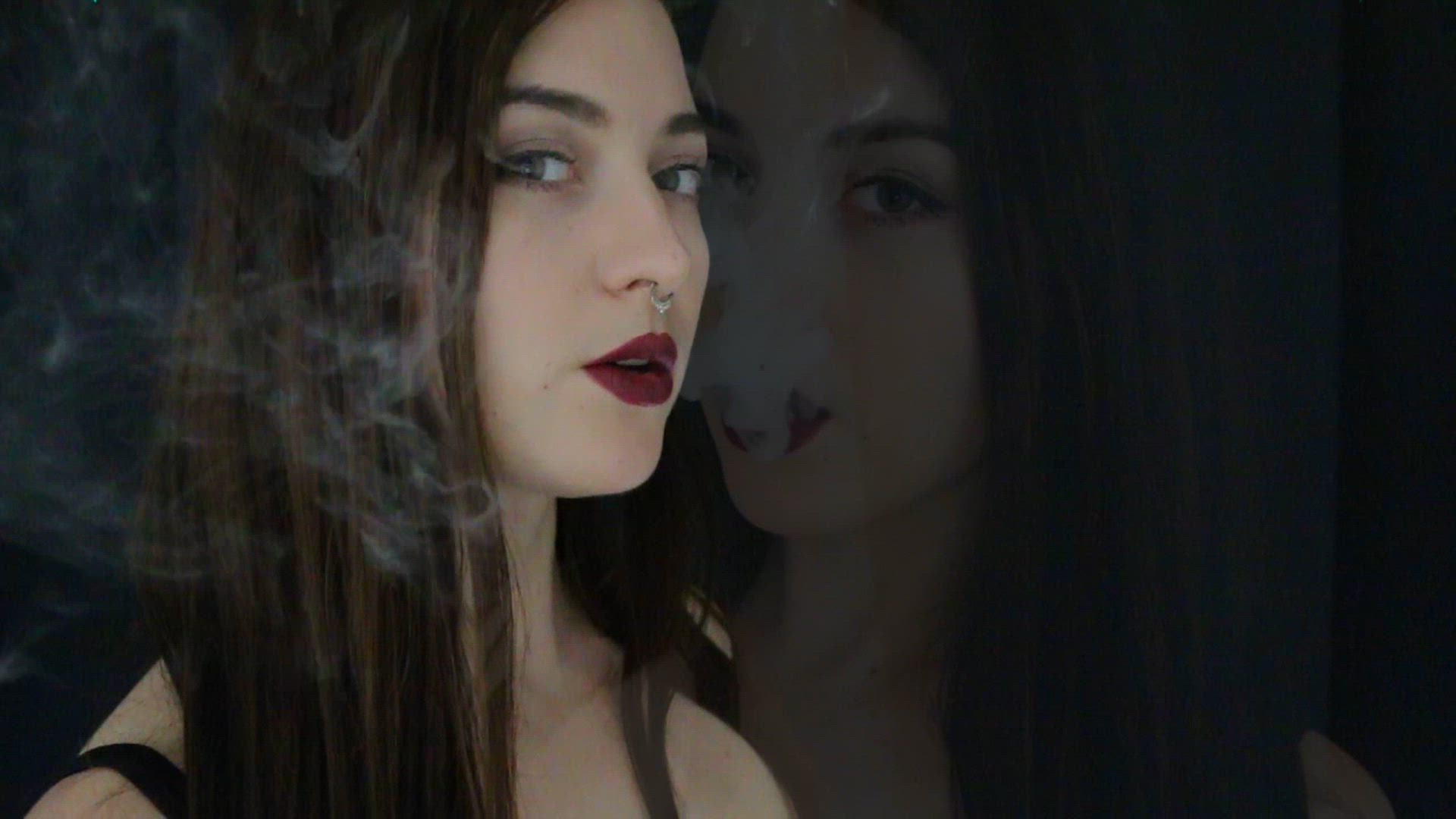 I light up and envelop you in my smoky allure, dressed in sheer black lingerie that hugs my curves perfectly. Watch me exhale swirling clouds that dance around my body, teasing you with every puff and seductive glance. Join me in this ghostly fantasy where the haze builds your desire to an intense peak.