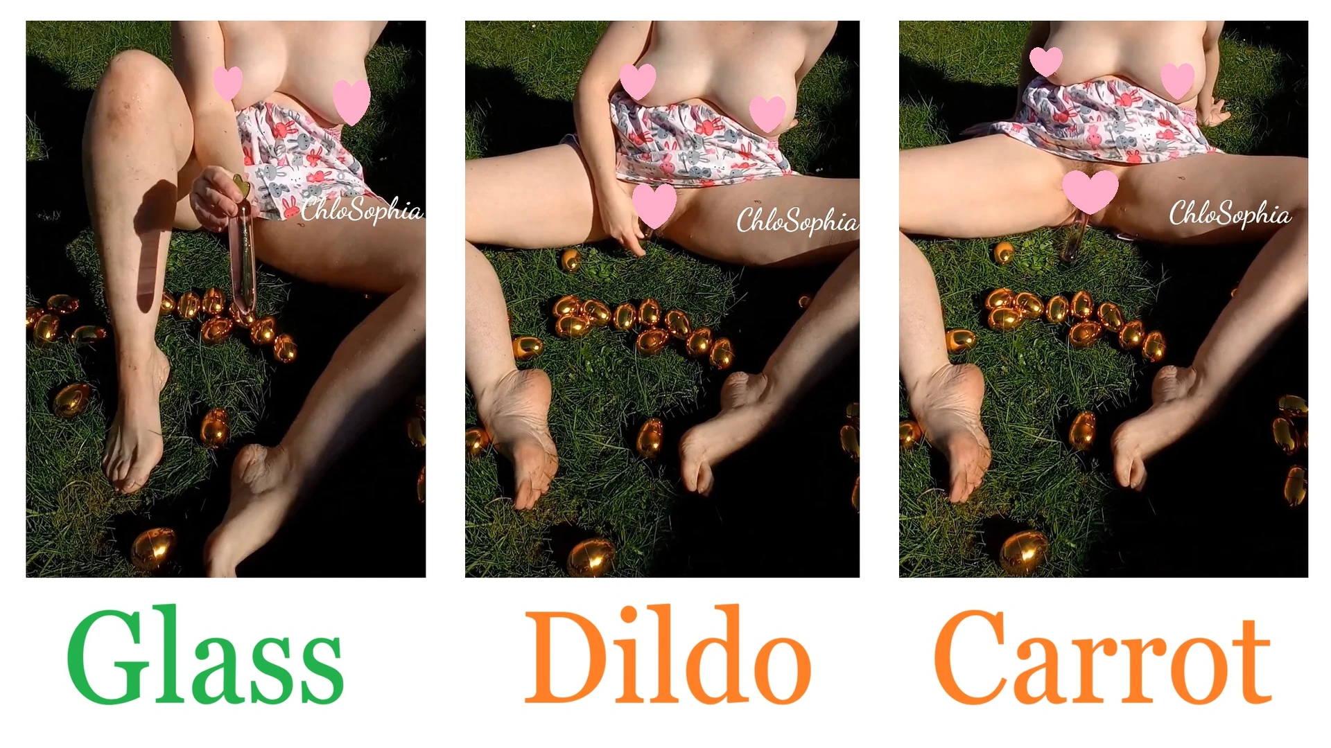Glass Dildo Carrot Play ~ Topless + Natural hairy pussy play! Outside in the garden in Easter skirt!