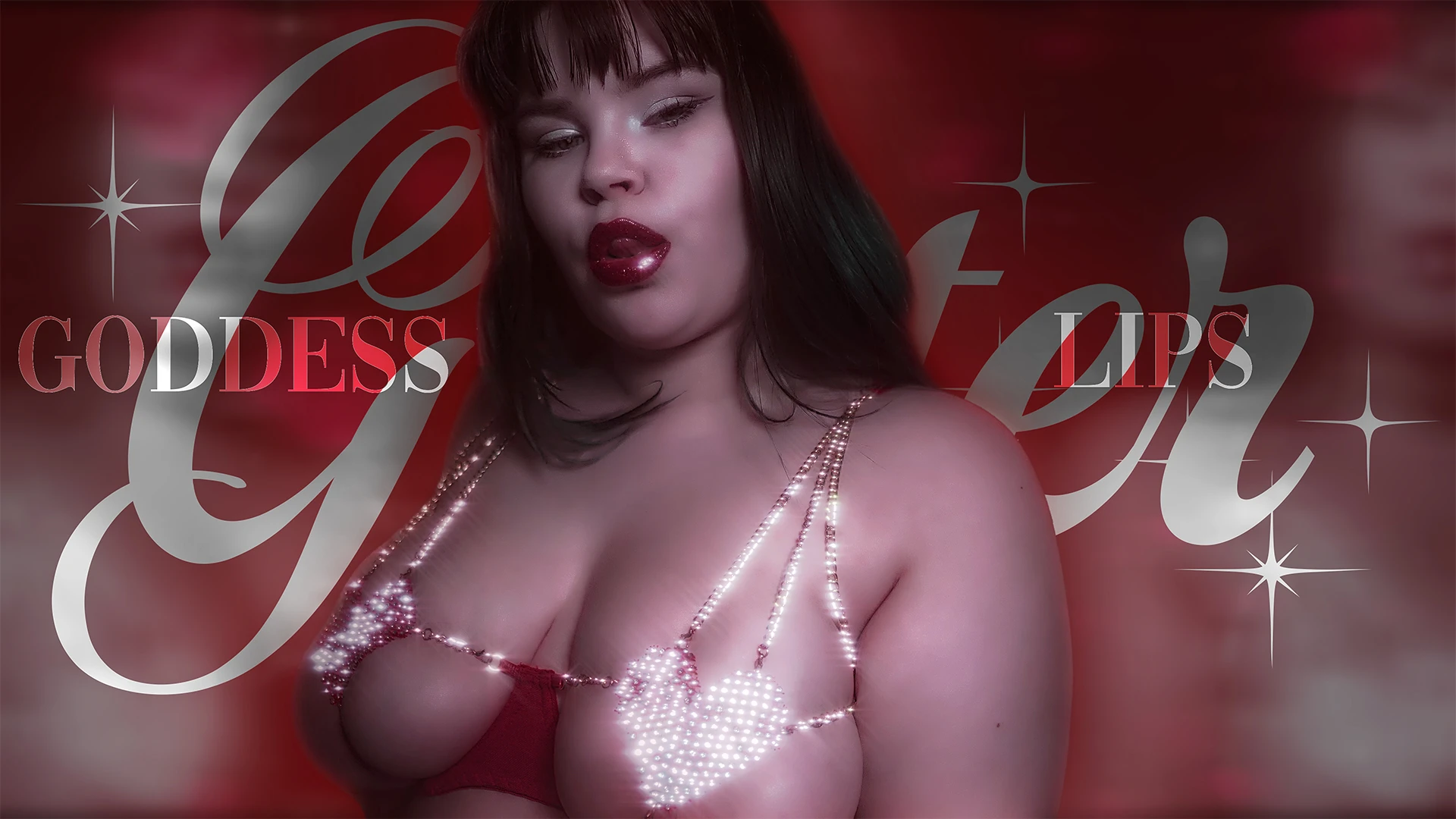 My shiny red glitter lips sparkling like forbidden jewels against my lush, dark brunette waves. Framed by my pale doll-like skin and Watch my plump, kissable lips part slowly, glistening with red glitter that draws you deeper into my captivating world. Each lush, wet lip smack and slow-motion kiss pulls you under my spell—perfect for lip fetish gooners. Sensual slow teasing, but as obsessed you are with my perfect lips, my shiny red hearts make you go deeper for my plump delicious tits.