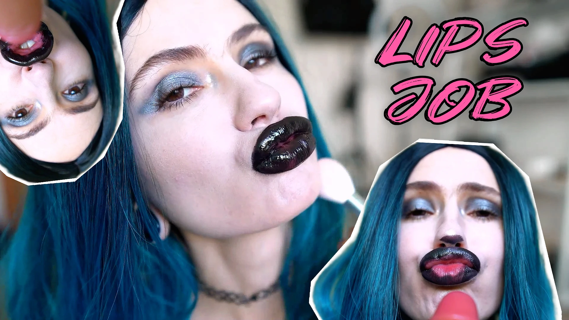 CUSTOM: lip pouting and lip job with dildo, only lip job need not get a length. 3 scenarios, like the tv watching, the scrolling on phone, and applying makeup, and 3 angles in each of those scenes - top down, side, and pov. the same lip job style, you can hold your lips on the tip for longer sometimes. lighter shade of makeup on too for the goth look. Step-bro want your attention, but you ignoring him