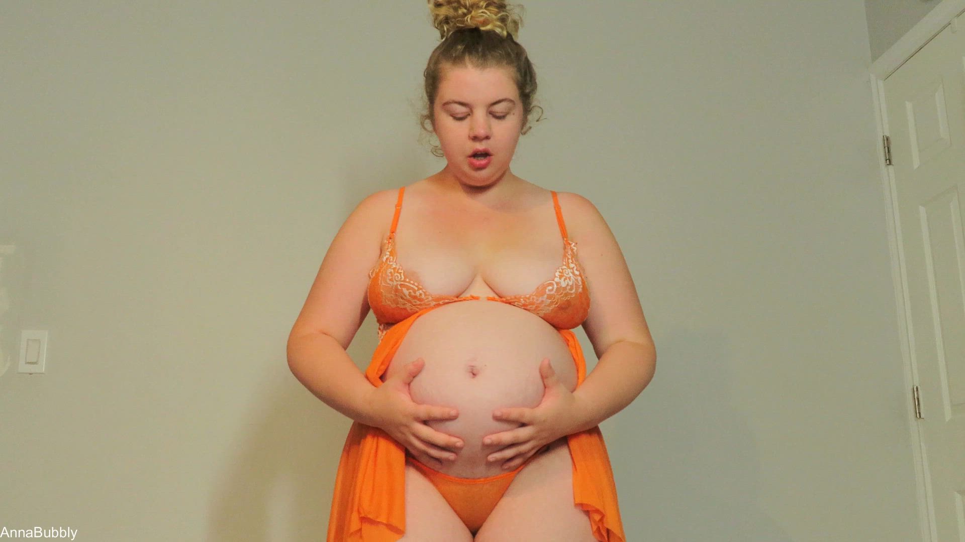 I did a similar more in depth video of this pre-pregnancy and thought it might be fun to re-create now that I am pregnant! I am 5 months pregnant here which isn't mentioned, as my belly in this is due to being a big, greedy eater. We come back from our date to my place and I talk about how much I ate at dinner. I go and change into some lingerie (change is off screen so this video remains non-nude). You start feeling a little fuzzy but don't think much of it. I return in lingerie as if we are about to have sex, but the screen goes back for a couple seconds and you find yourself suddenly smaller. I am towering over you with my big belly, and talk about what is going on. I have shrunken you and plan to have you for dessert! You can't honestly be surprised, I mean look at me. I am a greedy girl! I slowly pick you up, giving you a view of my belly and breasts and mouth as I bring you to my mouth. I swallow you whole, and you end up in my belly with all the food I had with dinner. It is packed in there! The camera view switches from POV to viewing me, rubbing and talking to you in my belly as you start to digest.