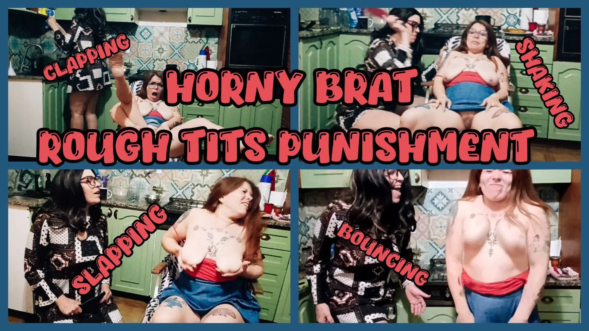 Spanking her boobs, making her jump, slapping her face with her own boobs.