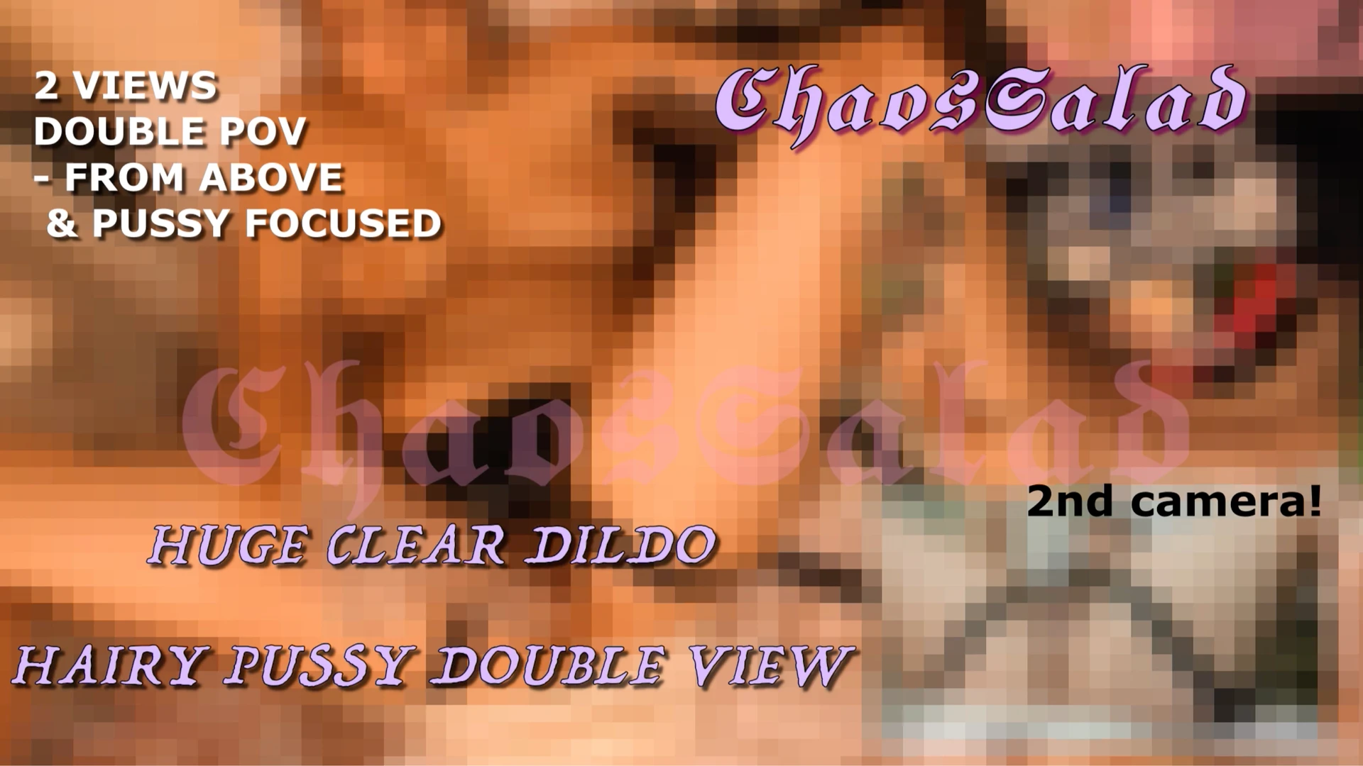 Chaos fucking herself with the massive strapon she’s wearing, getting carried away and pulling the toy from the harness to better fill her hairy pussy - seen from two simultaneous points of view / cameras !!