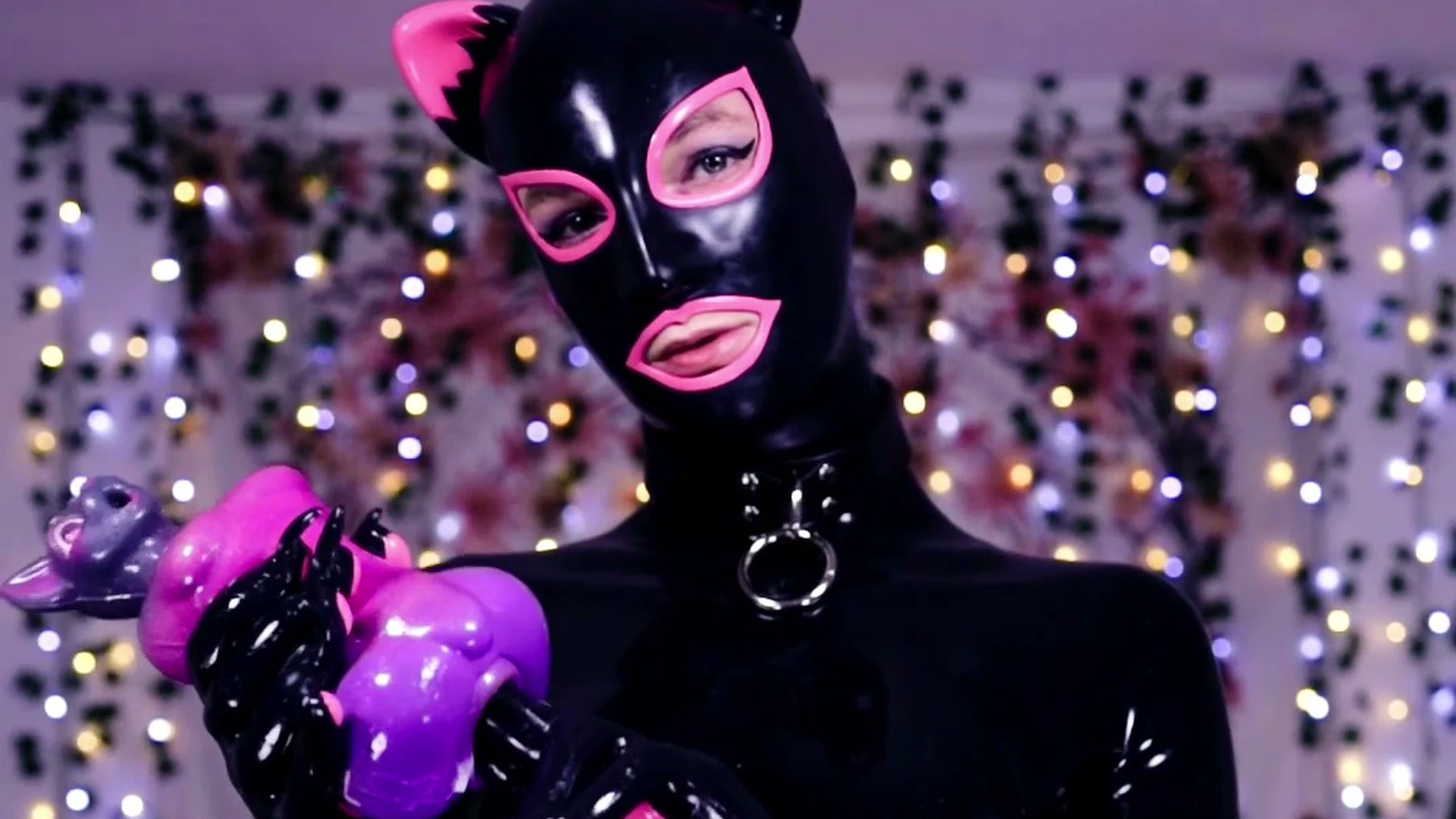 Hung Trans Girl In Silicone Catsuit Uses Cute Masturbator Toy