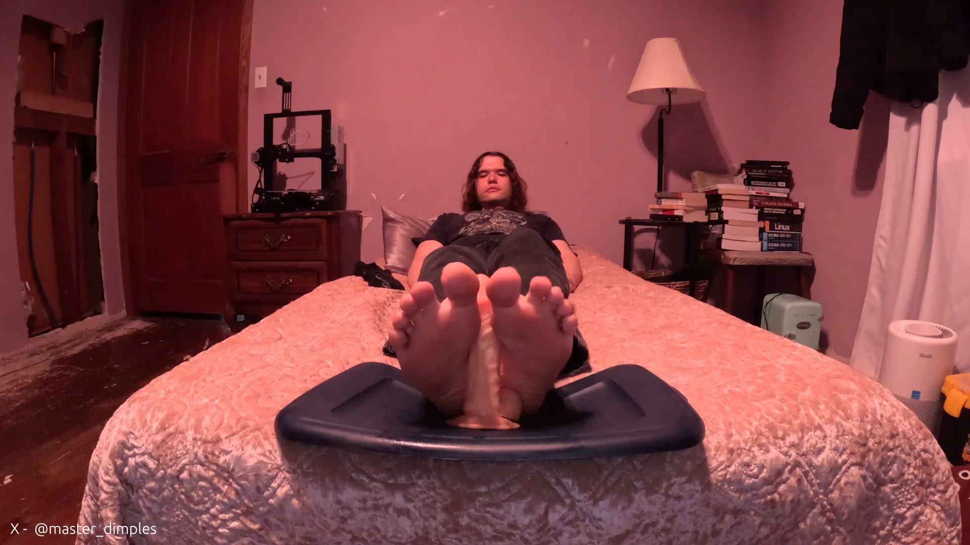 I give my dildo a footjob. Imagine it's your cock and my size 11 are stroking it.