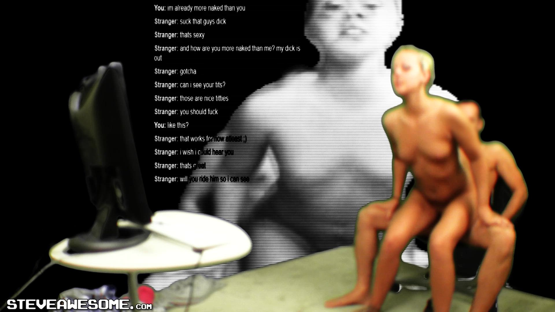 Searching a random chat site for partners who are interested in the topic of sex, Jenna Suvari and Steve Awesome located an older guy who was more than happy enough to boss Jenna around so he could bust his nut. Jenna knows how to take orders and starts off with an amazing blowjob on Steve's rock hard dick. Bending Jenna Suvari over the table so he can fuck her from behind, Steve Awesome assumes his favorite position while our random chat partner strokes his cock furiously. Steve and Jenna comply with his every wish. Jenna makes sure she maintains eye contact with random chat guy while her pussy gets pounded by Steve's thick dick. Suggesting to Steve that Jenna should ride him, the random chat partner gets whatever he wants. He's asked for Jenna to sit on Steve's dick and go hopping up and down on it and that's what he's getting. Steve is more than happy to grab Jenna's yummy ass as it rides up and down with each thrust more serious and lustful than the last. The random masturbating naked chatter informs Steve and Jenna that he'll cum if she sucks Steve off on last time. Always happy to have his dick sucked by a gorgeous blonde, Steve offers his dick back to Jenna's mouth and she hungrily swallows his cock. The random chatter ejaculates. There's wild text-based applause. Mission accomplished!
