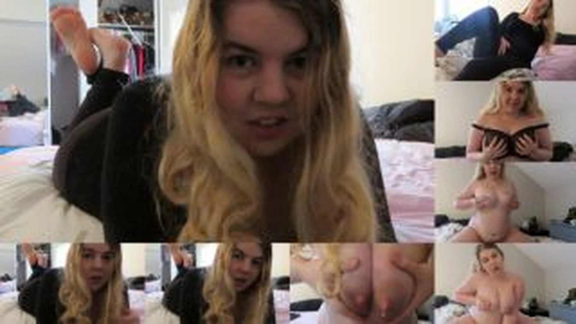 I'm your side piece and have your secret offspring. I beg you to leave your wife, I miss you. I take off my top and play with my big tits. Then I remove my bra and squirt my milky tits. I play with my pussy while milking myself, begging you to leave your wife for me