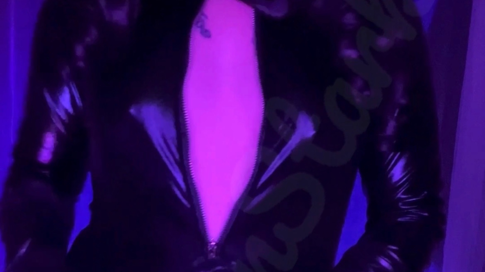 Rubbing myself and exposing my perky tits in a latex bodysuit and gloves