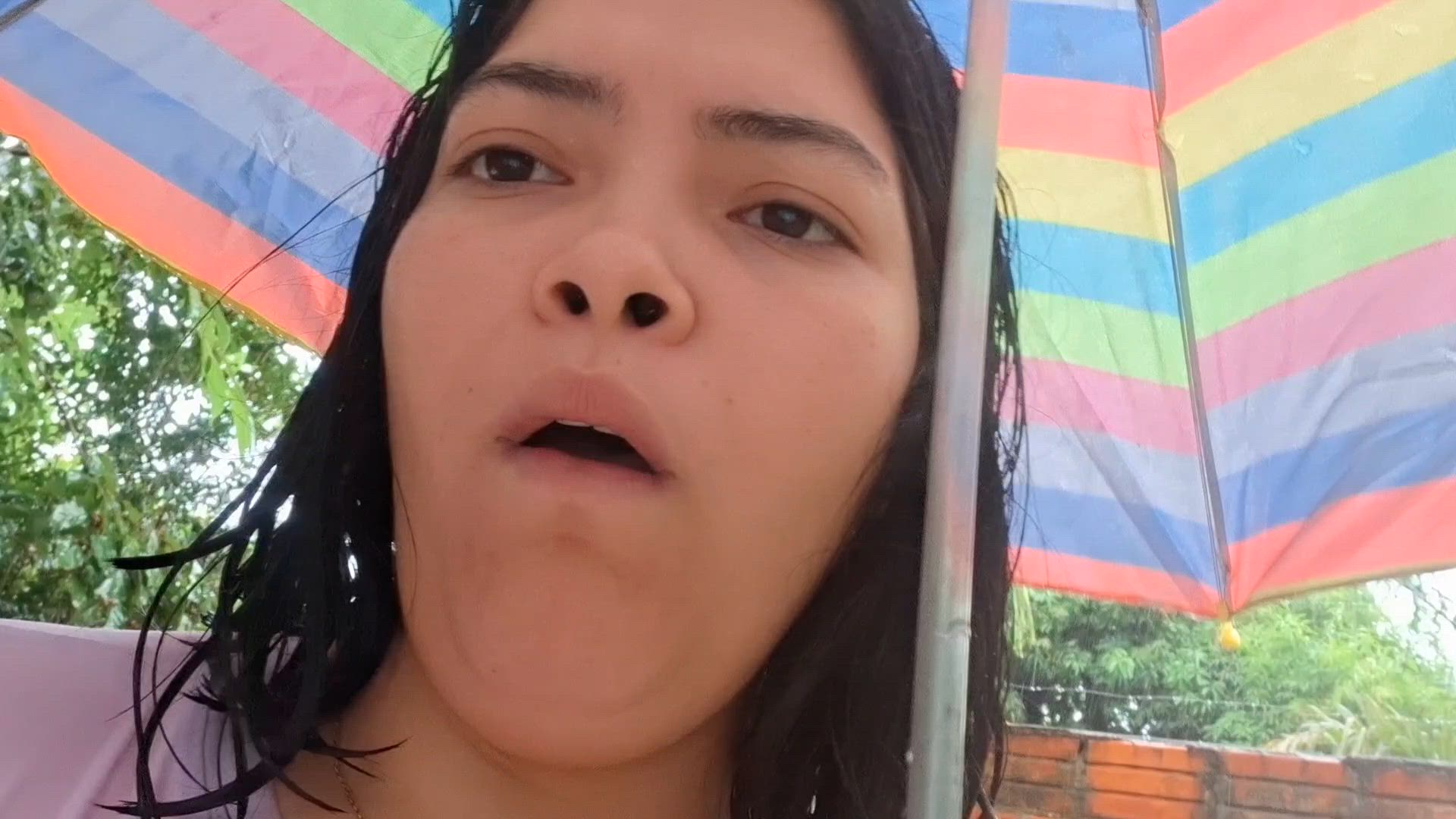 Latina girl gets sick in the rain