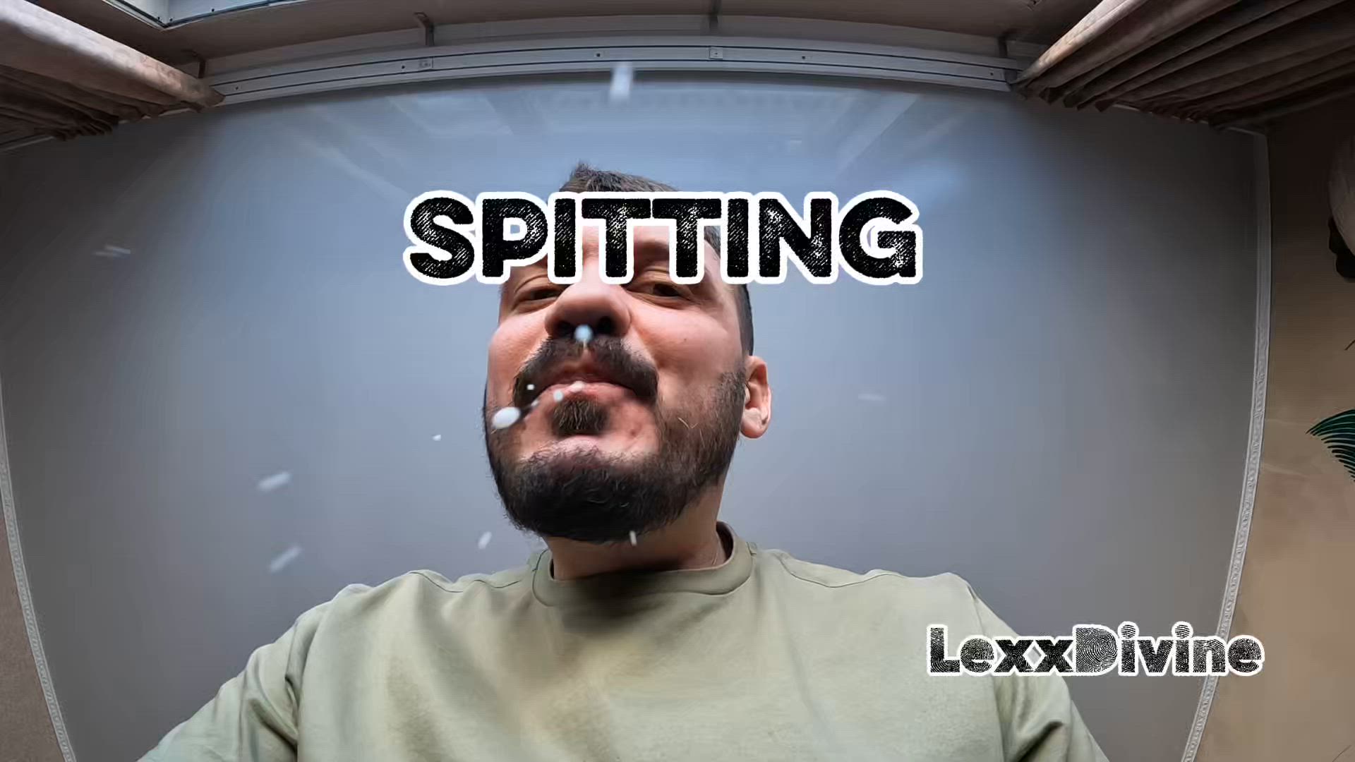 I position myself above you — visually and psychologically. The camera is close. I stare directly into the lens with cold confidence before spitting straight into the camera, slowly, deliberately, without hesitation.
