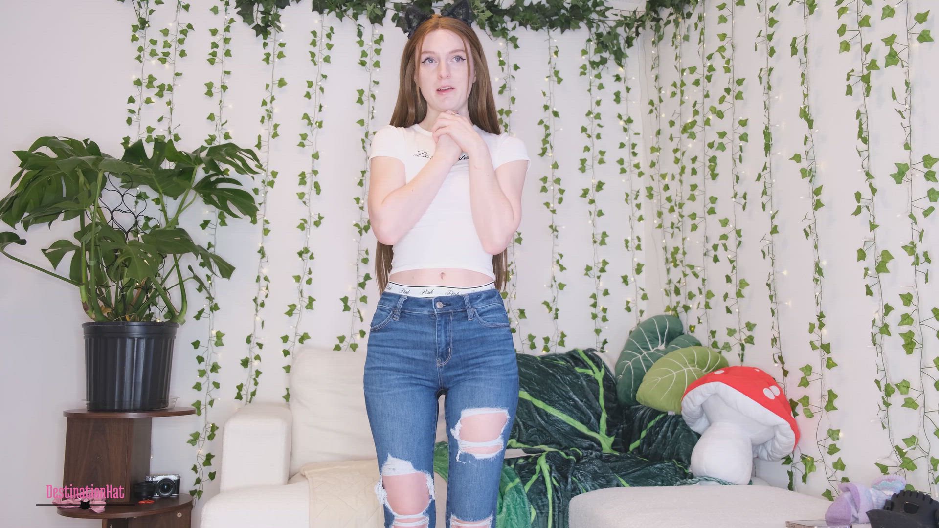 I won a lifetime supply of tea from my favorite brand! I've already had so much of it but I need to keep finishing it before it expires! I can't hold my pee any longer though and it all hits me at once, causing me to wet and piss in my jeans. I remove them and show my wet panty at the end.