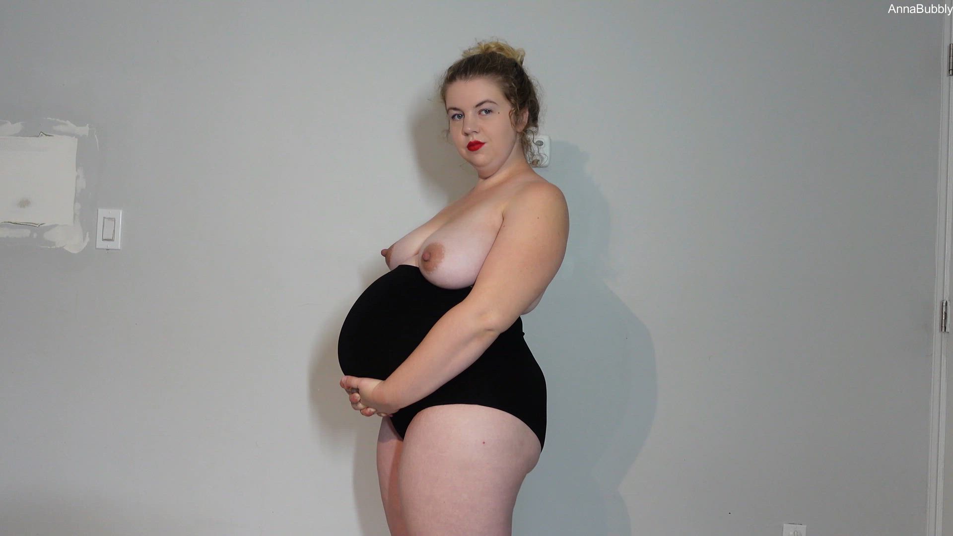 I am wearing over-the-bump maternity panties at 9 months pregnant and show off my bump. I rub it, stick it out, stretch, and show off different angles.