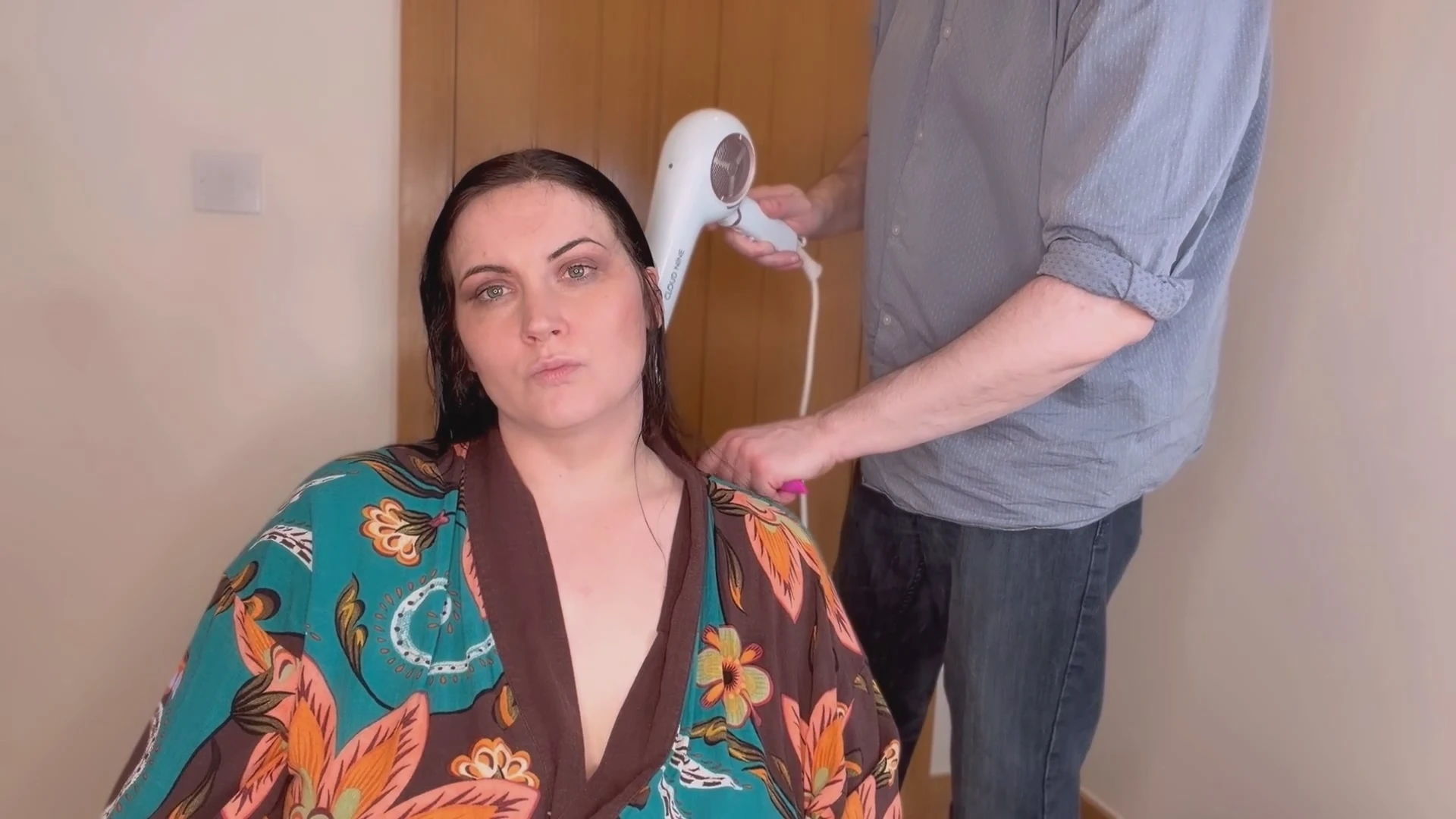 Miss FFW has just finished her shower, now she demands Mr gives her hair a perfect blow dry.