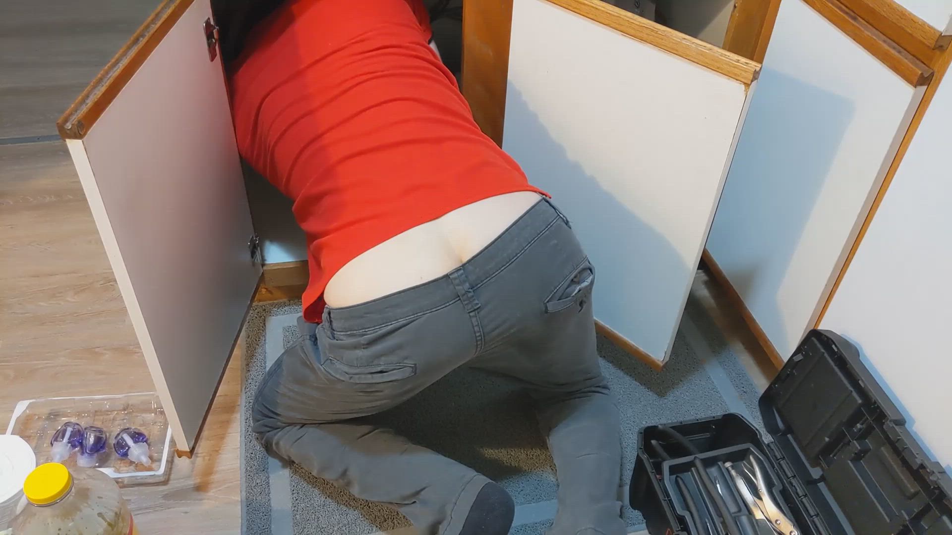 "Mr. Fix-It's Buttcrack: Sink Repair" - I heard you have a clog. Maybe I can fix it. Sorry my pants keep sliding down. All this hard work really has me breaking a sweat.