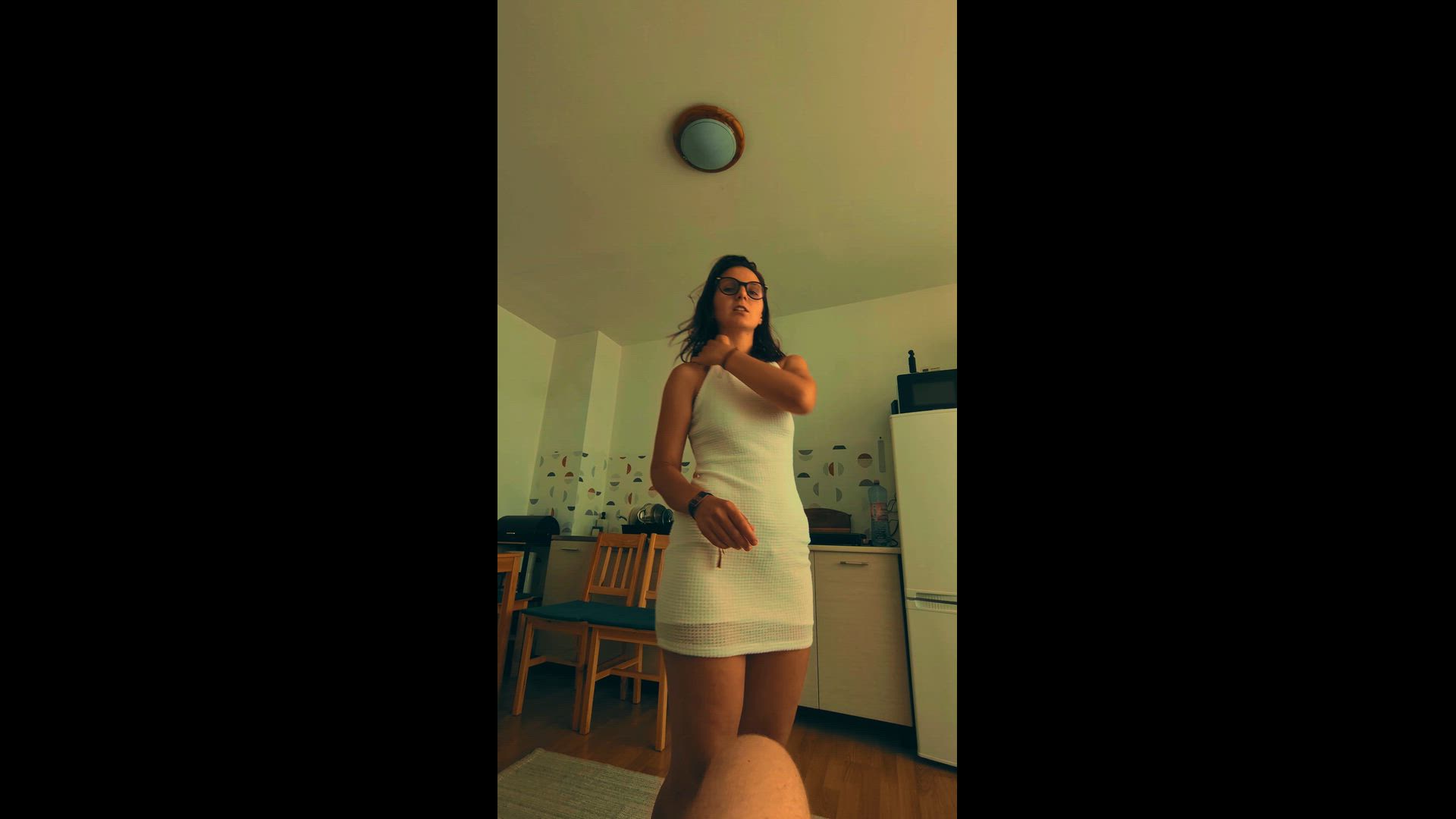 I tease you in my tight white dress, showing off my curves before grabbing my favorite toy. Watch me mount it wildly on the chair, riding hard until I explode in ecstasy. I moan and grind, giving you the ultimate solo show.