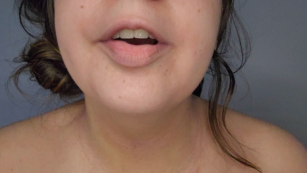 Super close-up on my full, natural, plump lips. I grab them with my fingers and stretch them slowly in every direction pulling up, down, sideways, tugging them out to show how elastic and meaty they are. Then I lick and drool saliva all over them, making them shiny and wet as they glisten up close....