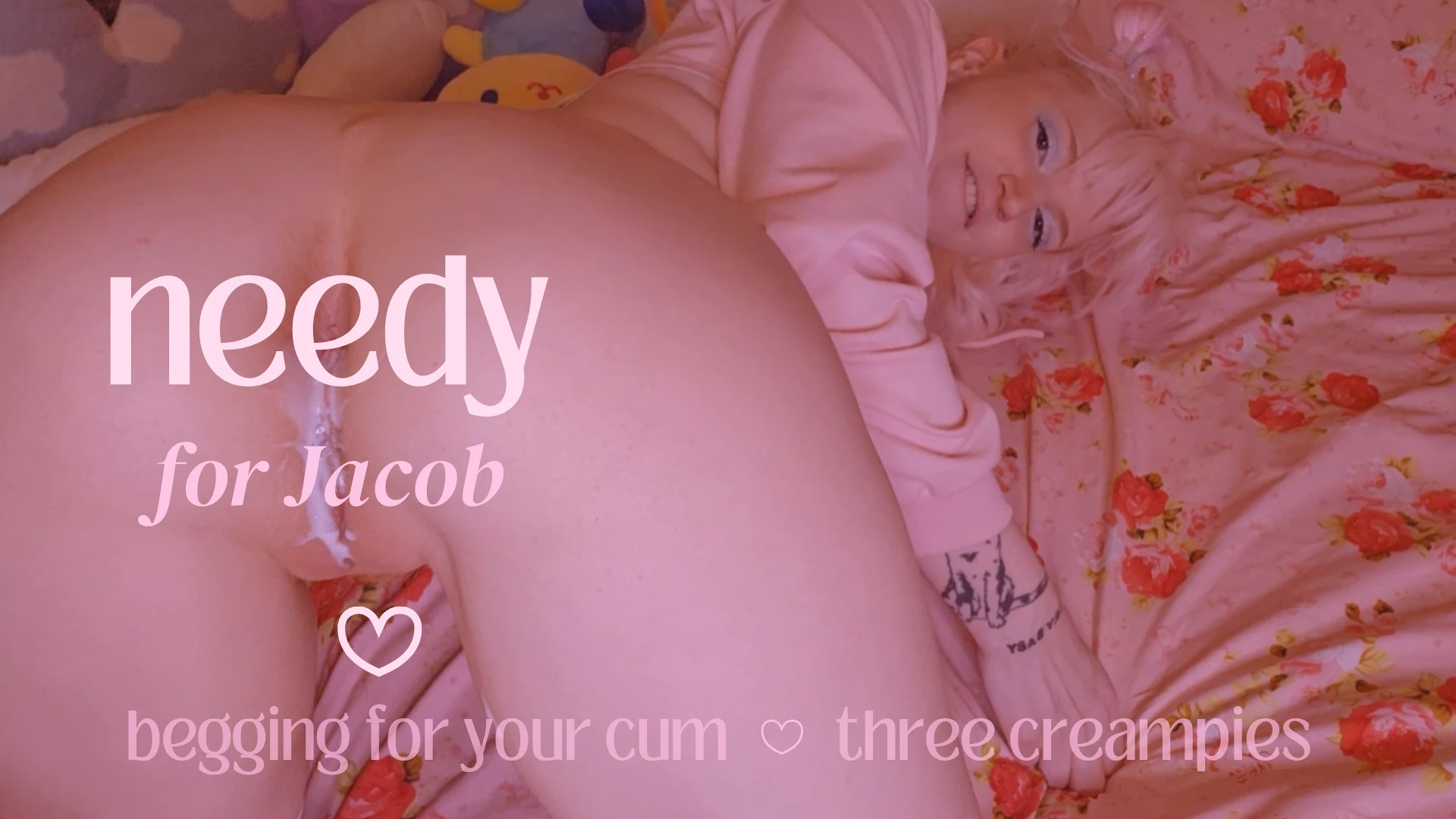 Jacob, I'm so needy for you! I want you to fuck me so bad, I need to be filled with your cum over and over again. fuck me doggystyle, missionary, and then let me ride on top, each time making you cum inside me, showing off the creampie, and then begging for more. don't stop, Jacob, keep cumming in me!