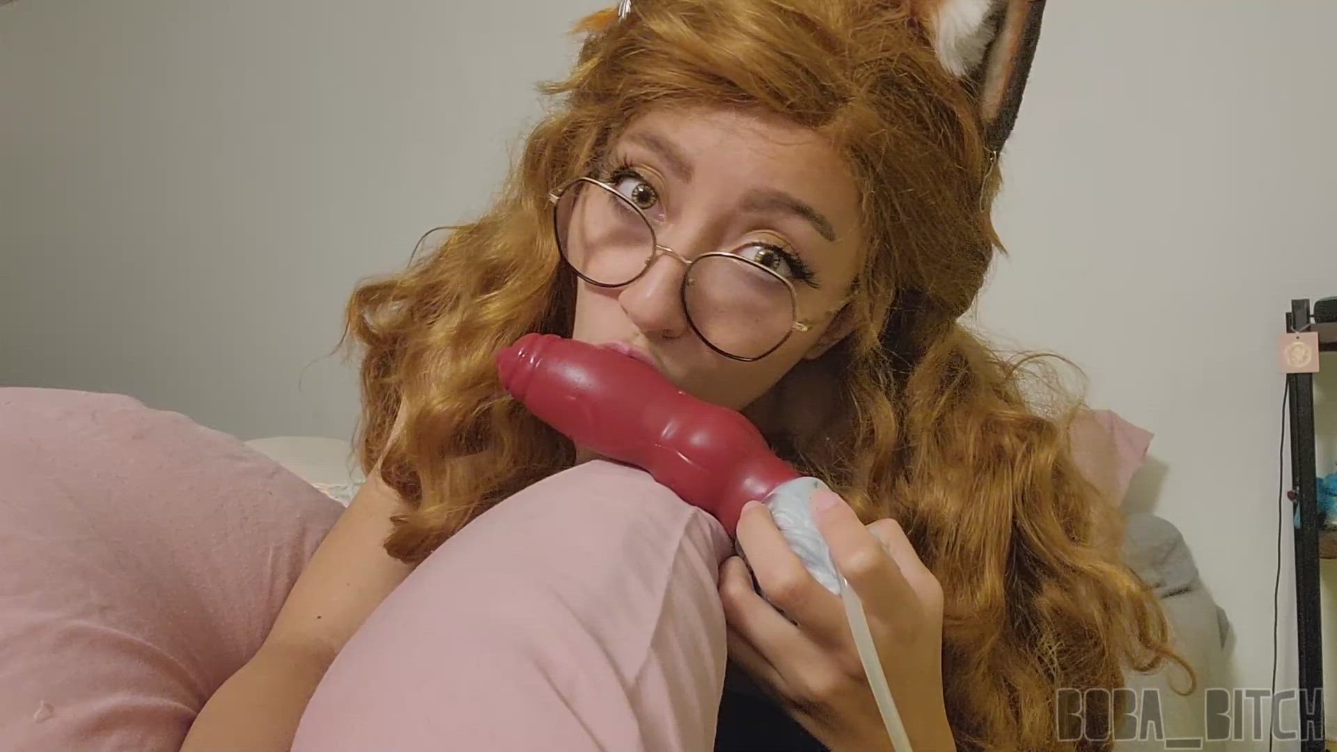 I literally am a virgin when it comes to Footjobs. This was my very, very first attempt! This is a very foot-focused, relaxing experience. I start off my massaging and oiling my feet. I stretch them, crunch them, let the rest naturally, wiggle my toes, and basically give you the full range of motion for my feet. I play with my feet while I give my Bad Dragon, Diego, a deepthroat blowjob and then lube up Diego for round two with my feet. I'm a little uncoordinated, but I get the hang of it! On the plus side, I'm flexible, so I end up giving a footjob and blowjob at the same time! After all that teasing, I finish myself off by fucking my pussy with Diego's yummy shaft and super filling knot. I end up cumming three times! I LOVE Diego when I'm stretched out and ready for him. <3 Shot in 1080p