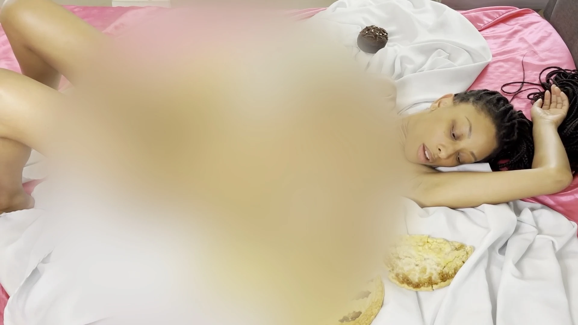 I surround myself with tempting pies and cakes, ready for some indulgent fun. Watch me smear the creamy fillings all over my skin, getting utterly coated in the gooey goodness while I touch myself sensually. It builds to an explosive peak as I revel in the slippery sensations.