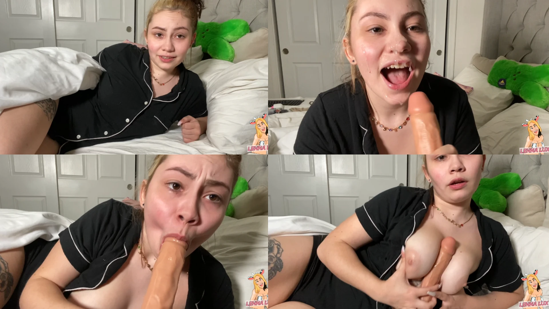 I lounge on my bed in cozy pajamas, teasing you with my perky assets as I wrap them around this thick toy. Watch me eagerly suck and stroke it, building up to my desperate pleas for you to explode all over my pretty face. I crave that sticky finish and won't stop until I get it.
