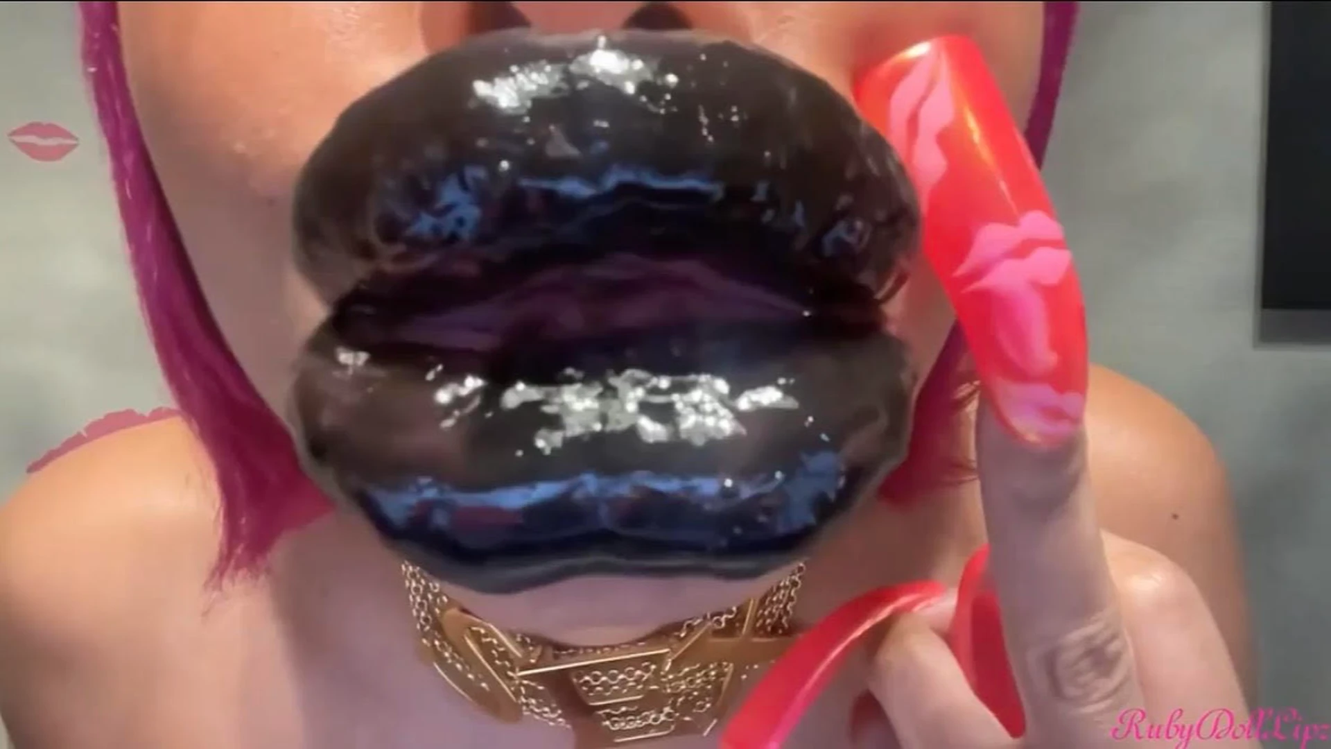 This POV Fetish Black Kisses video features a seductive display with my Blow-Up Doll pout covered in Black Lipstick & Lip Gloss. Enjoy a variety of kiss styles, from gentle to aggressive, with lip sounds, moaning, pink tongue, and plenty of licking action. The visuals create an immersive experience of being engulfed by intense, passionate kisses. Let yourself get lost in this dreamy, sensual fantasy.