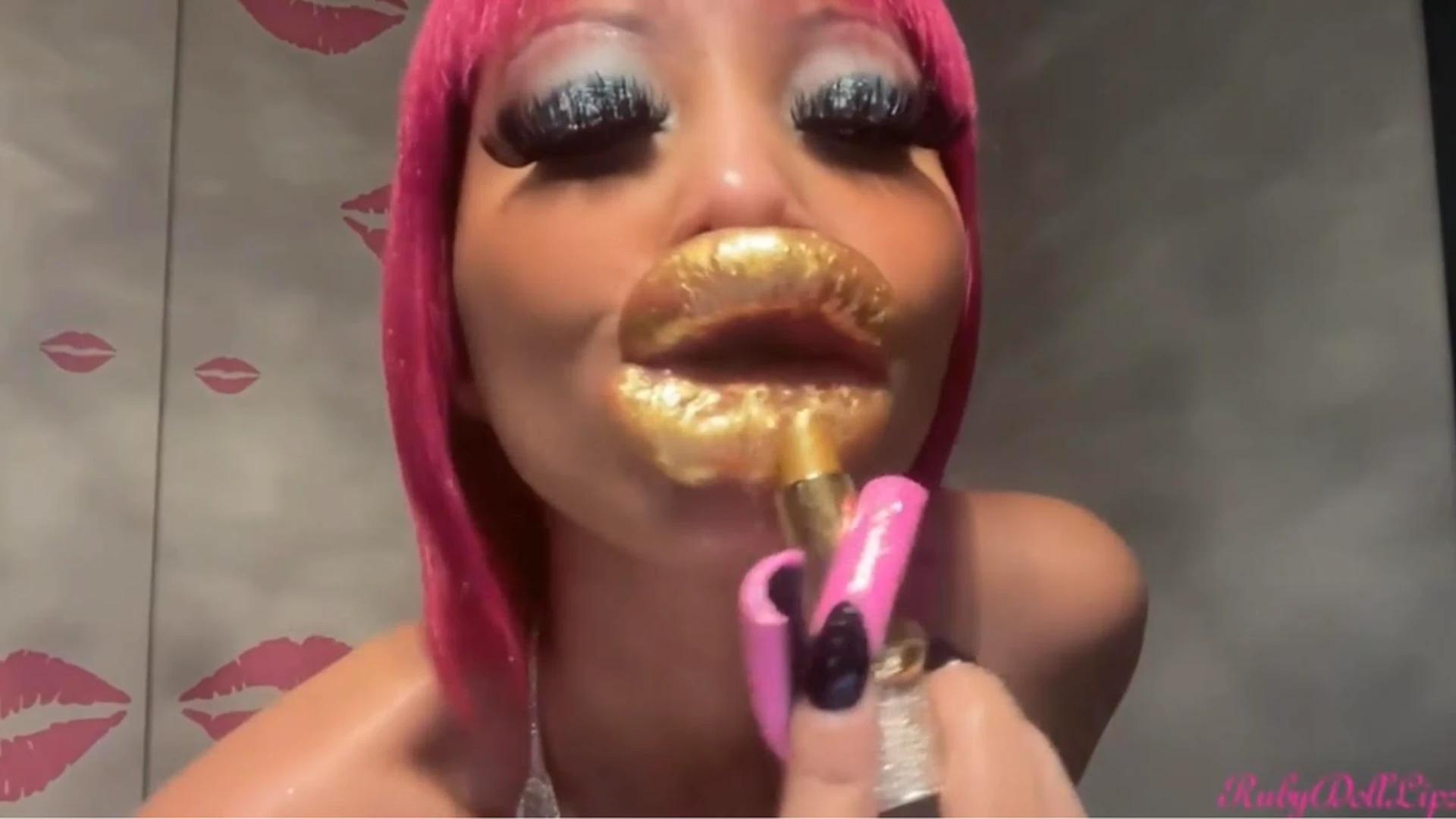 Watch as I cover my Blow-Up Doll pout in shiny, Gold Lipstick and give sensual kisses from both standard and POV fisheye lens views. Enjoy the lip sounds, gentle moaning, pink tongue, and some playful licking action. Earn this dreamy, seductive experience.