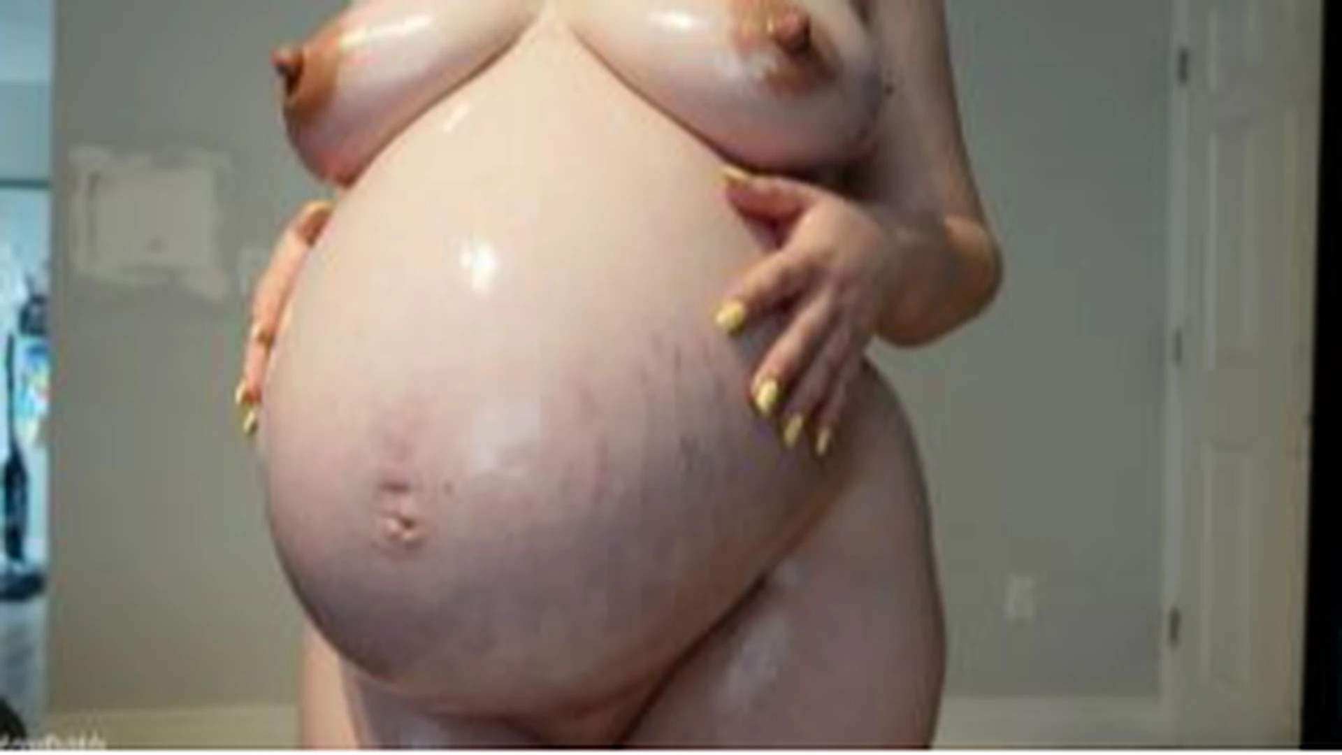Oiling my pregnant body, 40 weeks pregnant. I oil my arms, tits, belly, ass, legs, my full body.