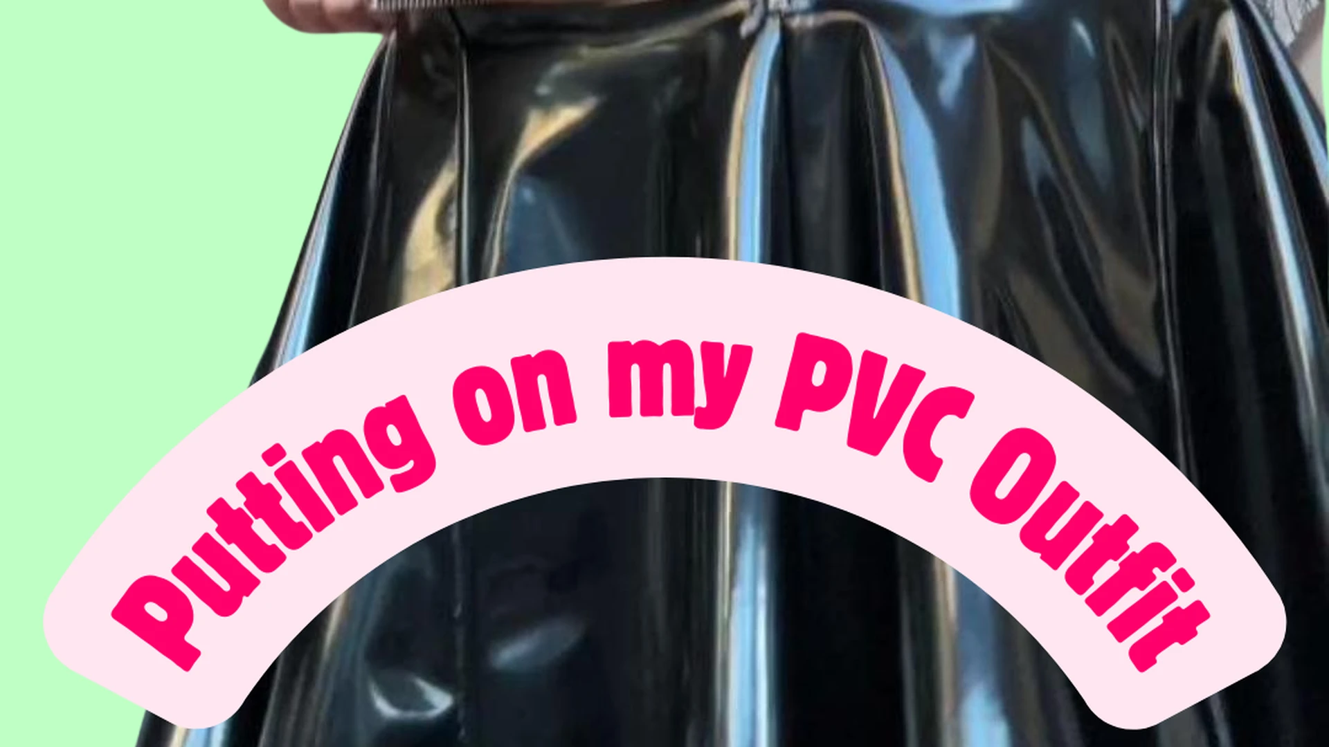 Watch me start topless and tattooed, slowly squeezing into my shiny black PVC corset and skirt. I pose seductively, twirling to show off every glossy curve and adjustment. Get ready for an intimate view as I flaunt my outfit just for you.