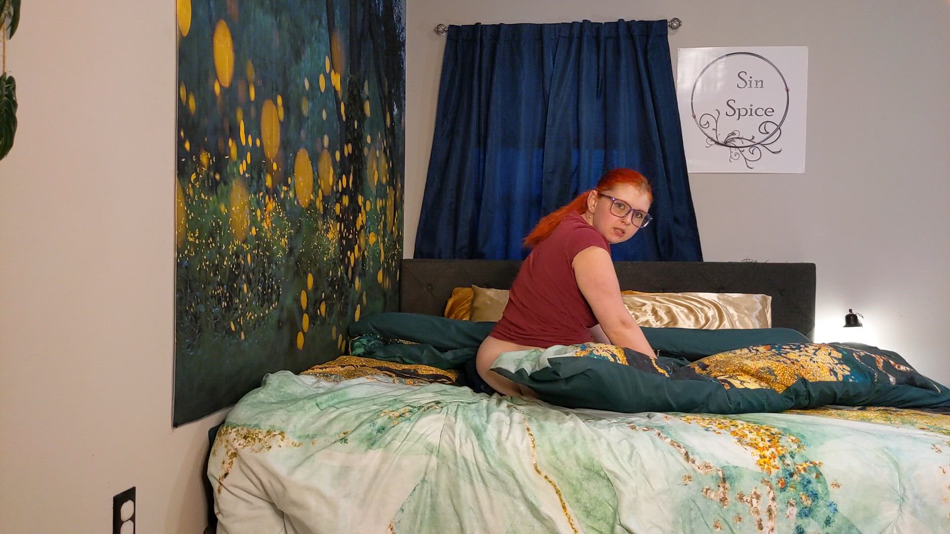 "Redhead StepAunt's Buttcrack Exposed Making Your Bed" - You are so messy! I need to make this bed. Are you really just going to stand there and watch me? I think you just enjoy seeing my buttcrack peek out of my jeans, pervy stepnephew.