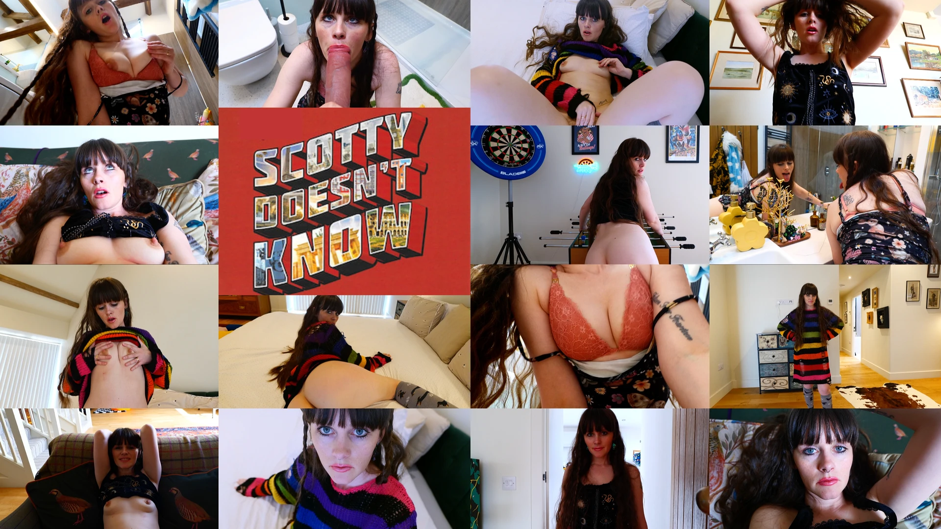 I can’t believe I have FINALLY made this video! I had wanted to turn the song “Scotty Doesn’t Know” into a porn film for ages and now I’ve done it! The video contains visuals to the whole song (on my knees, thrusting from behind, on top, underneath, Scotty on the phone, the church lie, the shopping lie and I even get fucked by you on Scotty’s birthday (oops!) .. I may have also added my own twist to keep things true Sydney Harwin style… yay! Oh and don’t forget.. don’t tell Scotty, shhh!