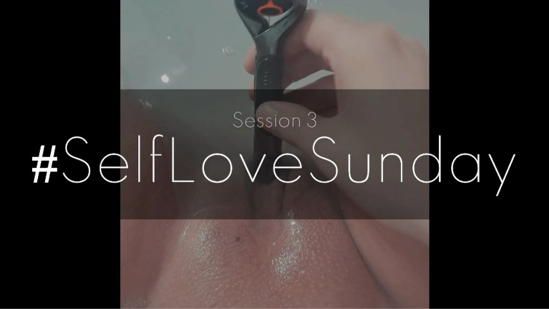 In the 2nd video of Session 3 of #SelfLoveSunday, Valerie Rayne shares a self-love session from the bath. She can't find her dildo, she she removes the sharp end of her shaver, turns on the vibrating handle feature and inserts it deep inside her pussy while rubbing her way to orgasm after more than 8 minutes.